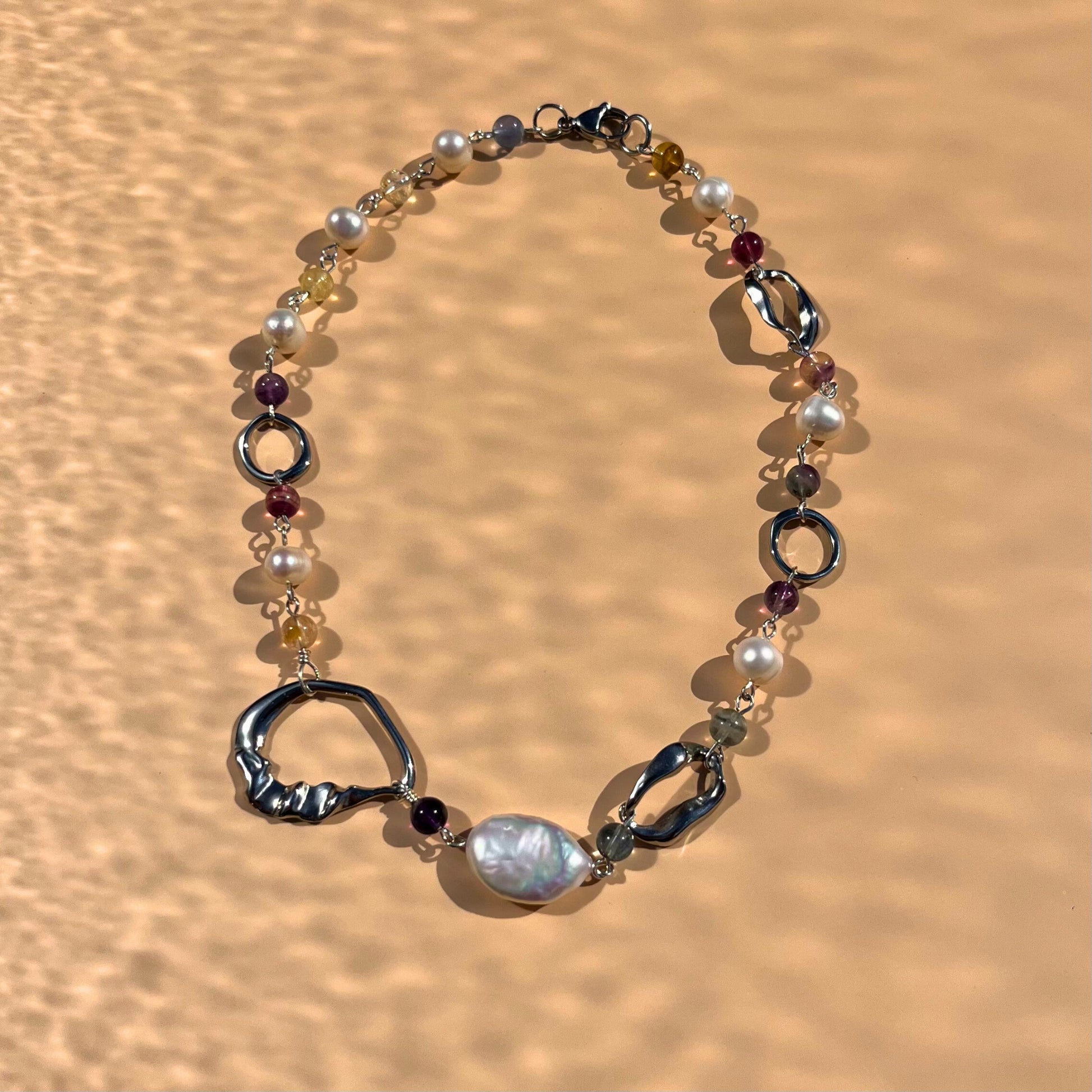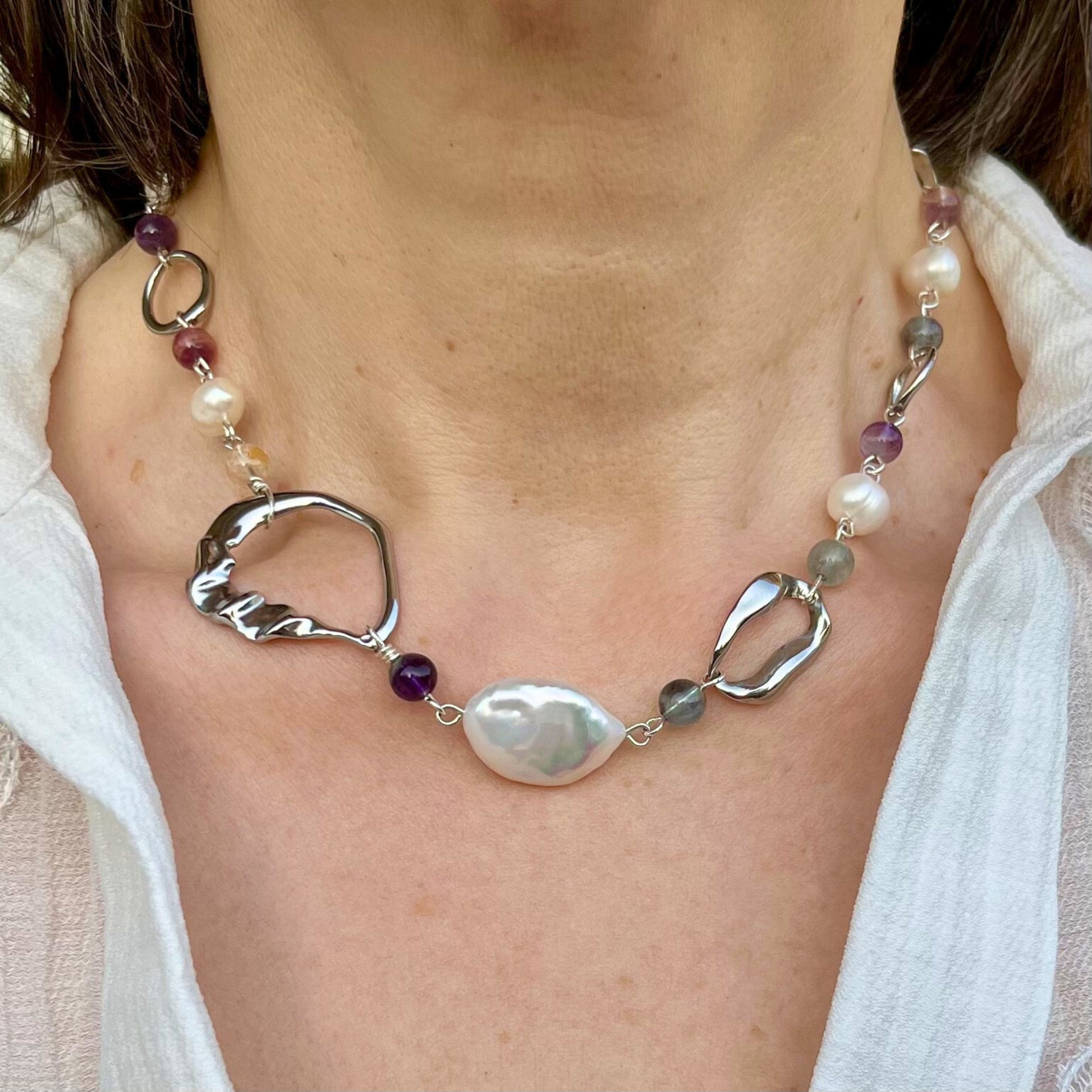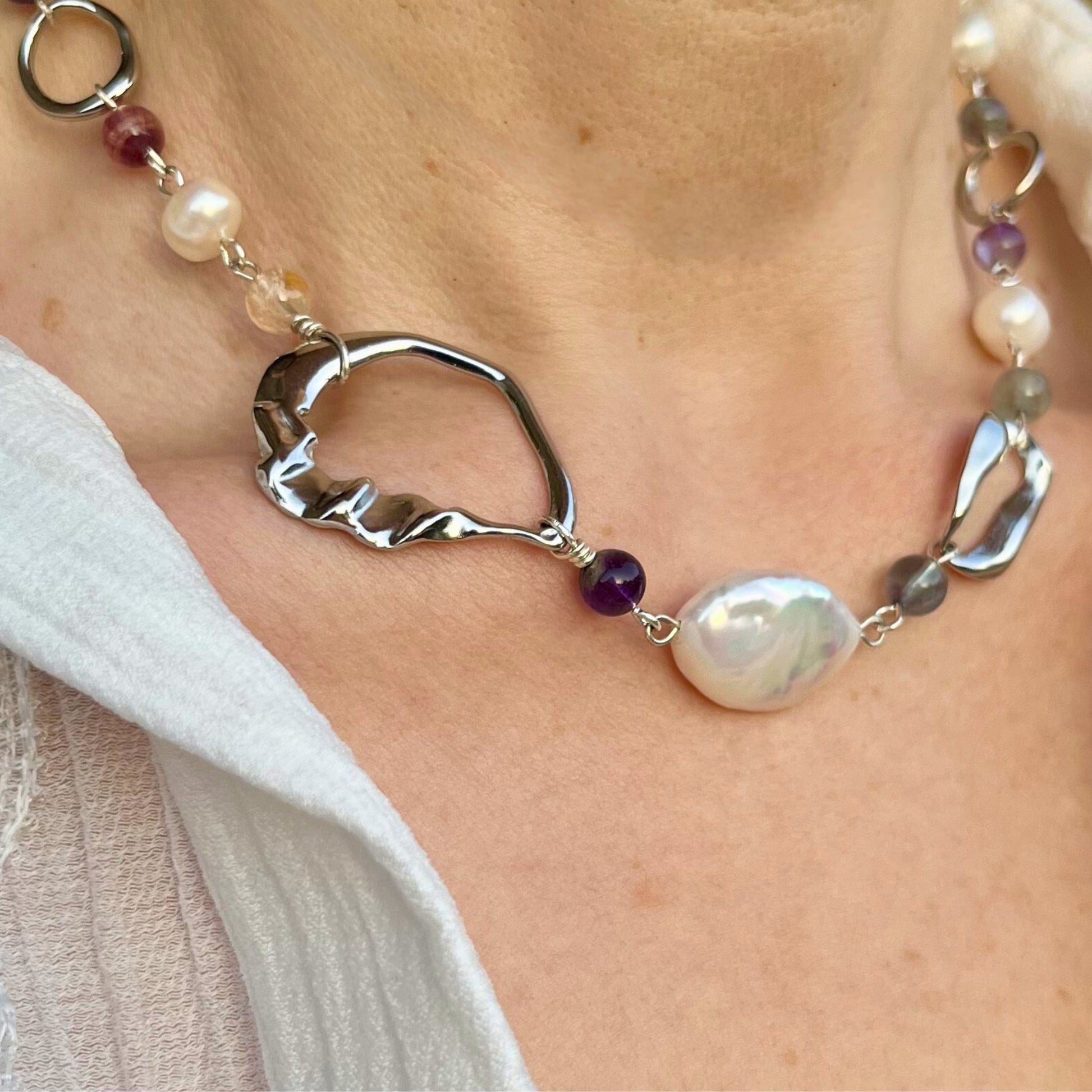 Collier fluorite et perles d'eau douce - Aura Cleanse