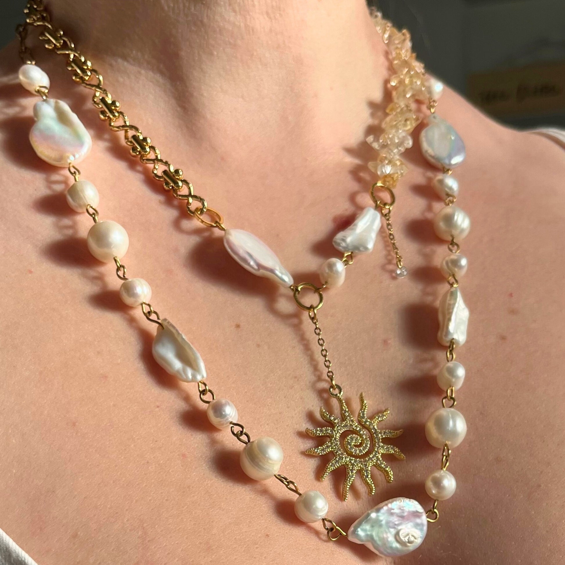 Évite le contact prolongé avec l’eau ou les parfums pour préserver l'éclat des perles de culture.